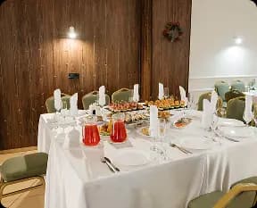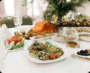 Во время торжества вас обслуживает опытная команда, которая работает незаметно, быстро и тактично. Подача блюд, сервировка и внимание к деталям — всё на высоком уровне, чтобы вы могли полностью погрузиться в атмосферу праздника.